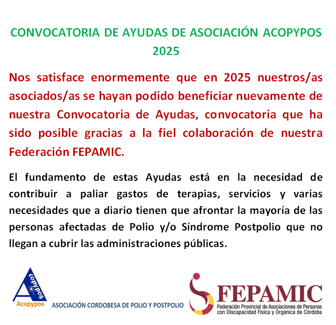 CONVOCATORIA DE AYUDAS DE LA ASOCIACIÓN ACOPYPOS SUBVENCIONADA POR LA FEDERACIÓN FEPAMIC